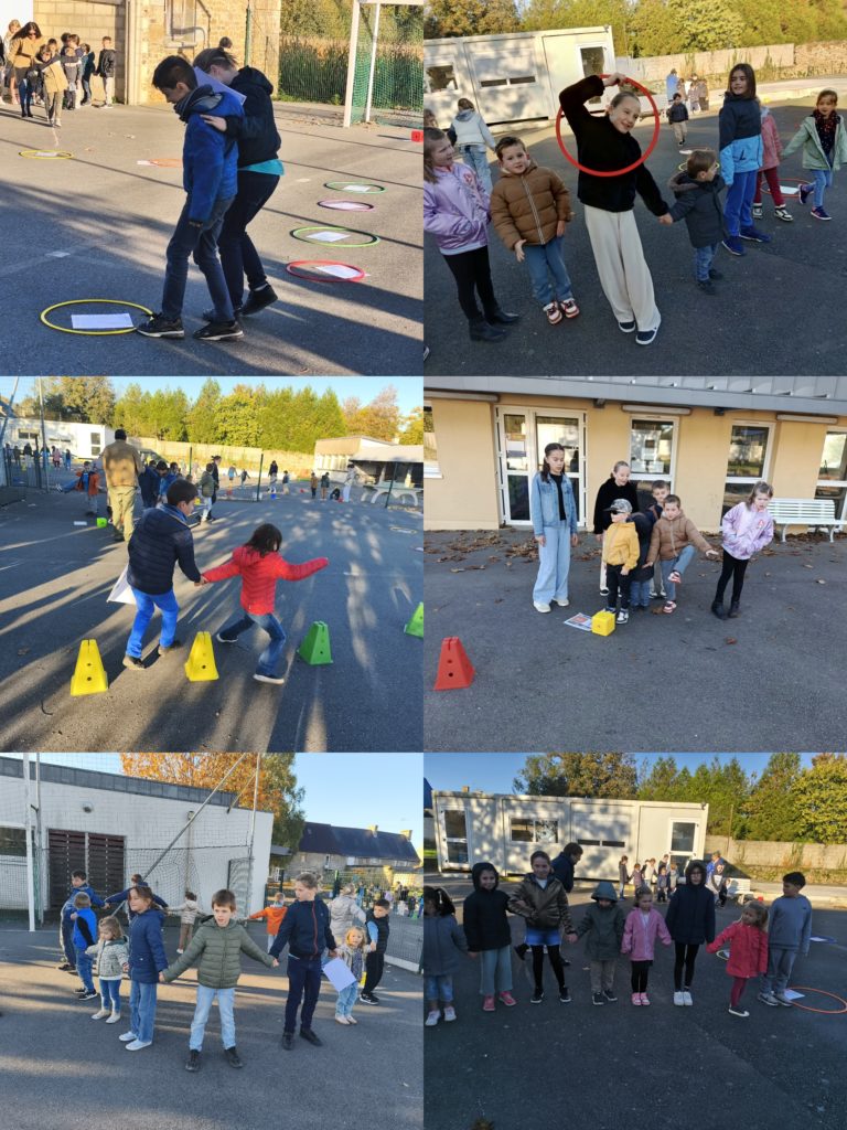 Ce vendredi 17 octobre, tous les élèves de l’école se sont retrouvés pour le jeu de rentrée de l’UGSEL. Ils étaient par équipe. Toutes les classes étaient mélangées pour former des binômes d’âges différents. Ils ont réalisé des défis sportifs et ont découvert des spécialités des différentes régions de France: des aliments et des animaux. A la fin du jeu, ils se sont tous retrouvés pour danser. Quel chouette moment!
